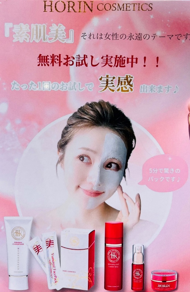 たった1回のお試しで【実感】できる[HORIN化粧品]の無料お試し実施中♪5分で驚きのパックです!是非1度、お気軽にご予約下さい(^・^)